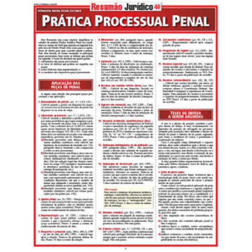 O objetivo deste Resumão é simplicar os estudos da matéria de Prática Jurídica Penal aos candidatos que vão prestar a segunda fase do Exame da OAB na área de Direito Penal. A obra aborda, de forma resumida, as principais peças processuais e as defesas que podem ser arguidas. Aplicação das peças de penal, teses de defesa a serem arguidas, como elaborar uma argumentação e os modelos de peças processuais. São 16 modelos, que vão desde relaxamento da prisão em flagrante, a interposição do recurso de agravo a habeas corpus e livramento condicional, entre outros.