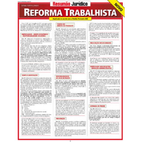 O mais novo título da coleção Resumão Jurídico explica as principais mudanças da reforma trabalhista, aprovada em julho de 2017, que provocou profundas alterações nas relações de trabalho. O que exatamente vai alterar a vida de trabalhadores e empresários? O Resumão Reforma trabalhista explica as principais inovações feitas na CLT, mencionando ainda as Súmulas que deverão ser adequadas ao novo texto da lei. Todas as informações importantes para você ficar por dentro da reforma.