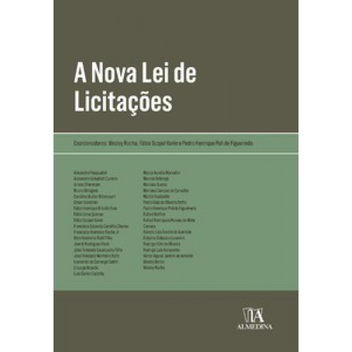 A obra “Nova Lei de Licitações” é uma produção coletiva de juristas, desenvolvida com o objetivo de comentar a Lei n. 14.133/2021. O propósito do livro é apresentar a nova norma, seus aspectos inovadores, eventuais controvérsias na sua interpretação e destacar as mudanças em comparação com a Lei 8.666/1993. O livro conta com prefácio do Ministro do TCU, Dr. Benjamin Zymler e é estruturado em 22 capítulos de autoria de juristas e pesquisadores consagrados: Conselheiros de Tribunais de Contas, Consultores do Congresso Nacional, Auditores, Consultores e Advogados da área do direito administrativo, além de professores de universidades de diversas localidades do país. A coordenação foi realizada pelos professores Wesley Rocha, Fábio Scopel Vanin e Pedro Henrique Poli de Figueiredo, resultando em uma obra que proporciona uma visão completa e diversificada do tema, apta a atender as necessidades de diferentes públicos e contribuir de forma completa na compreensão da nova lei.