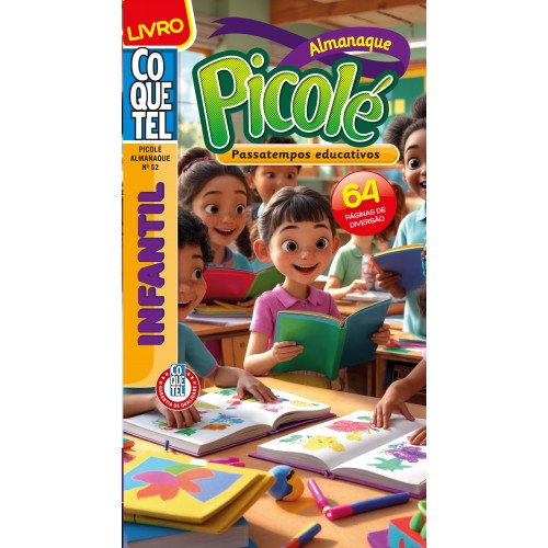 64 páginas Indicado para crianças de 6 a 9 anos Passatempos educativos e interativos: caça-palavras, cruzadinhas, labirintos, jogo dos erros, torto, figuras diretas, sudoku, criptograma, mensagens secretas, experiências científicas, inglês para crianças, curiosidades, lógica, quebra-cabeças e maisO Almanaque Picolé é uma publicação Coquetel pensada especialmente para crianças em fase de alfabetização e descoberta do mundo. Com 64 páginas repletas de atividades lúdicas e pedagógicas, este almanaque traz passatempos como caça-palavras, cruzadinhas, sudoku, jogo dos erros, labirintos, criptogramas, torto, lógica, figuras diretas, liga-pontos e atividades em inglês, além de curiosidades e até experimentos científicos simples, desenvolvidos com apoio de consultoria pedagógica. Indicado para crianças de 6 a 9 anos, o livro estimula o raciocínio lógico, o vocabulário, a atenção, a coordenação motora e o gosto pelo aprendizado, tudo de forma divertida e colorida. Ideal para momentos de lazer longe das telas e para uso em casa, viagens ou como complemento escolar. O Almanaque Picolé é a escolha perfeita para pais e educadores que querem unir diversão e desenvolvimento cognitivo de forma prática, segura e envolvente.