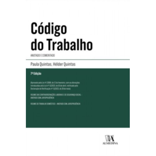 Nesta edição, procedemos à atualização que se impunha em virtude da Lei nº 13/2023, de 03 de abril (retificada pela Declaração de Retificação nº 13/2023, de 29 de maio), aprimoramos alguns comentários e inserimos as decisões mais recentes dos tribunais nacionais e do Tribunal de Justiça da União Europeia. Aproveitamos ainda para incorporar o regime jurídico do trabalho doméstico (Decreto-Lei nº 235/92, de 24 de outubro), o qual, juntamente com o regime processual das contraordenações laborais e de segurança social (Lei nº 107/2009, de 14 de setembro), contém notas jurisprudenciais. De resto, importa evocar que estes dois regimes também foram significativamente alterados pela referida Lei nº 13/2023.
