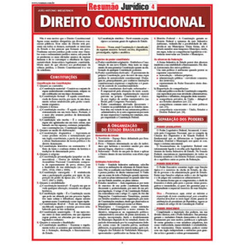 Classificação das constituições. Poder constituinte. A organização do Estado brasileiro. Separação dos poderes: Poder Legislativo, Poder Executivo, Poder Judiciário. Processo legislativo. Direitos e garantias fundamentais. Habeas corpus. Habeas data. Mandado de injunção. Ação popular. Mandado de segurança. Controle da constitucionalidade. Estado de exceção. Estado de defesa e estado de sítio. Destaque especial: princípios e direitos constitucionais, os direitos individuais e coletivos.