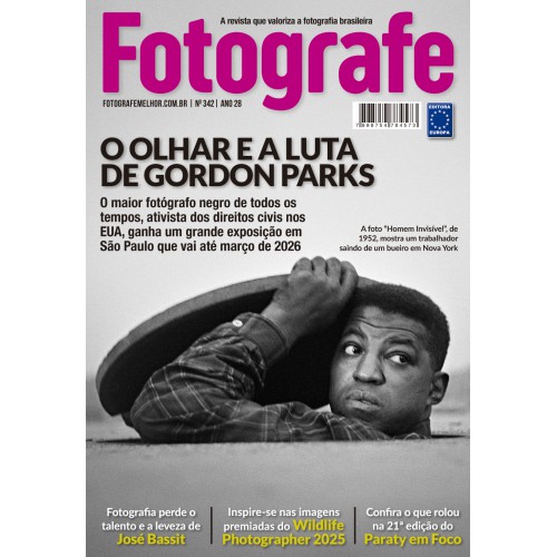 Nesta edição uma cobertura ampla sobre o legado de Gordon Parks, reconhecido como o maior fotógrafo negro da história e importante ativista dos direitos civis nos Estados Unidos. A publicação destaca a grande exposição dedicada ao artista, em cartaz em São Paulo até março de 2026. Um dos destaques é a imagem “Homem Invisível”, de 1952, que retrata um trabalhador emergindo de um bueiro em Nova York, simbolizando temas sociais recorrentes em sua obra.