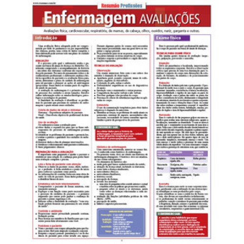 Os principais conceitos da avaliação de um paciente pelos enfermeiros. Técnicas de avaliação e exame físico (inspeção, palpação, percussão e ausculta) dos principais sistemas do corpo humano. Sistema cardiovascular, cabeça e pescoço, avaliação da pele, sistema respiratório, gastrointestinal, urogenital, musculoesquelético, neurológico e mamas. E ainda: a pós-avaliação, com documentação e síntese crítica.