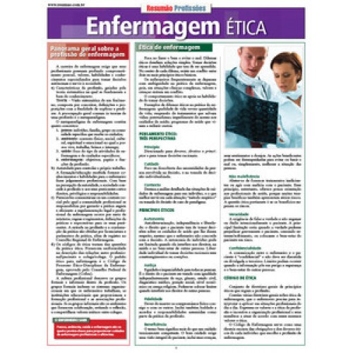 Panorama geral sobre a profissão de enfermagem. Ética de enfermagem, princípios, código de ética, tomada de decisão ética. Cuidados de enfermagem, modelos de cuidados de enfermagem. Responsabilidade e liderança, prática baseada em evidência e enfermagem como disciplina. Limites profissionais, delegação de responsabilidades, fontes de conhecimento, pensamento crítico e organizações profissionais.