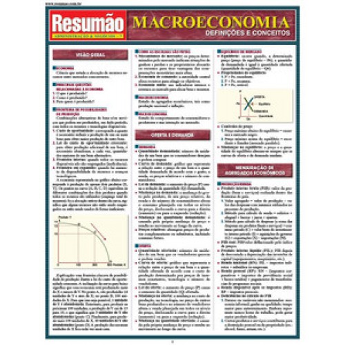 Os conceitos básicos da macroeconomia explicados de forma clara e direta neste guia prático que acompanha a trajetória profissional de seus leitores. Serve aos estudantes que precisam entender a matéria e aos profissionais que querem relembrar alguns conceitos. Escrito e revisado por especialistas, seu conteúdo está organizado de maneira que você possa encontrar rapidamente as respostas para as suas perguntas e os temas de seu interesse: as principais questões relacionadas à economia, oferta, demanda e equilíbrio de mercado, mensuração de agregados econômicos como produção e renda, níveis de preço, inflação e desemprego, o ciclo dos negócios, a abordagem keynesiana do gasto agregado, a política de gastos, a política fiscal e seus problemas, teorias macroeconômicas, efeito dos impostos na renda, política monetária e curva de Philips são alguns dos temas abordados. Direto ao ponto, fácil de guardar, ótimo para aprender e relembrar.