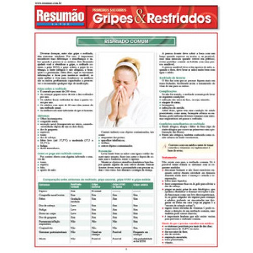 Gripes e resfriados são doenças muito comuns que atingem crianças e adultos todos os anos. Eles também têm sintomas bastante semelhantes. Este Resumão ajuda o leitor a identificar a reconhecer o resfriado comum, os vários tipos de gripe, as doenças pulmonares e as rinites. Sintomas, prevenção, complicações, tratamentos e, ainda, dicas para uma vida saudável.