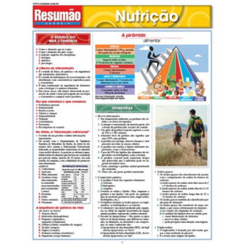 O estudo do que comemos: a ciência da alimentação, por que comemos o que comemos, a informação nutricional dos rótulos, a sequência da química da vida, a pirâmide alimentar. As gorduras, as proteínas e os carboidratos. Função das proteínas e necessidades proteicas. Tabela de proteínas. Como o corpo utiliza os carboidratos. Fontes de fibras. Tabela de vitaminas e os problemas do uso em excesso. Tabela de minerais. Funções dos nutrientes. Como trabalha o sistema digestivo. Metabolismo.