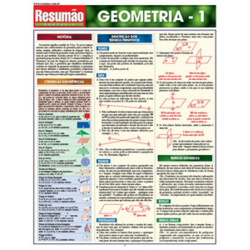 Um guia para descomplicar o aprendizado da geometria. Os conceitos básicos explicados de forma clara e direta neste Resumão que é ótimo para entender a matéria, relembrar definições e fazer uma revisão antes das provas. Escrito e revisado por especialistas, seu conteúdo está organizado de maneira que você possa encontrar rapidamente as respostas para as suas perguntas e os temas de seu interesse: ponto, reta, segmentos de reta, planos e ângulos, além de um quadro com fórmulas geométricas são alguns dos temas abordados. Juntos, os títulos de geometria (Resumão Geometria 1 e Resumão Geometria 2) cobrem os pontos mais importantes dessa complexa matéria. Direto ao ponto, fácil de guardar, ótimo para aprender e relembrar para as provas.