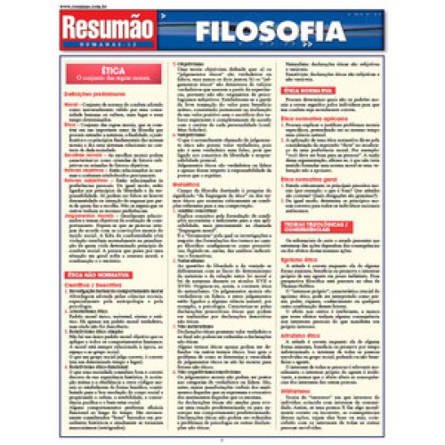 Ética: definições preliminares, ética não normativa e ética normativa, teorias teleológicas e teoria deontológicas. Metafísica - Parte 1: objetos de exemplificação múltipla, defesa do realismo baseado em termos singulares abstratos, defesa do realismo baseadas na semelhança e as defesas linguísticas do realismo. Parte 2: O problema da individuação, soluções propostas e compromissos ontológicos. A filosofia da linguagem: o tractatus e os jogos da linguagem. Epistemologia: realismo de senso comum, análise tradicional, análises de razões conclusivas e teorias causais.