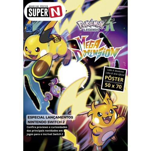 Edição especial da SuperN no formato bookzine poster. No lado livro curiosidade e informações sobre os novos jogos que estão chegando para o Nintendo Switch 2. Do outro um poster com arte oficial de divilugação de um jogo famoso. Nesta edição o poster em formato 50x70cm traz Pokémon Legends Z-A: Mega Dimensions!