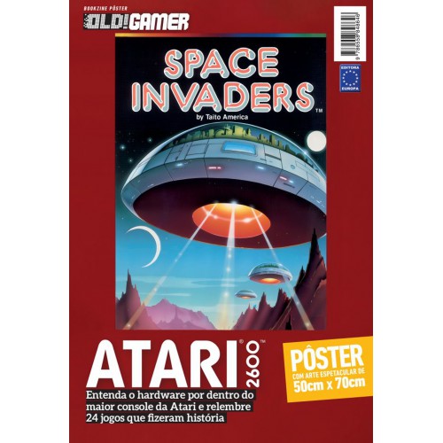 Esta edição é dedicada ao universo do Atari 2600, com destaque para o clássico jogo Space Invaders, desenvolvido pela Taito America. A arte do pôster apresenta uma representação visual do tema central do jogo: uma invasão alienígena em pleno cenário interestelar. Naves espaciais em formato de disco sobrevoam um terreno montanhoso, emitindo feixes de luz que remetem ao momento do ataque. Com dimensões de 50 cm x 70 cm, o pôster foi desenvolvido para ser exposto em ambientes variados, como salas, escritórios, quartos ou espaços de colecionadores. A publicação integra um material editorial maior, que também explora o funcionamento interno do Atari 2600 e revisita 24 jogos marcantes que definiram uma geração. dos videogames e deseja manter viva a estética da era 8 bits.